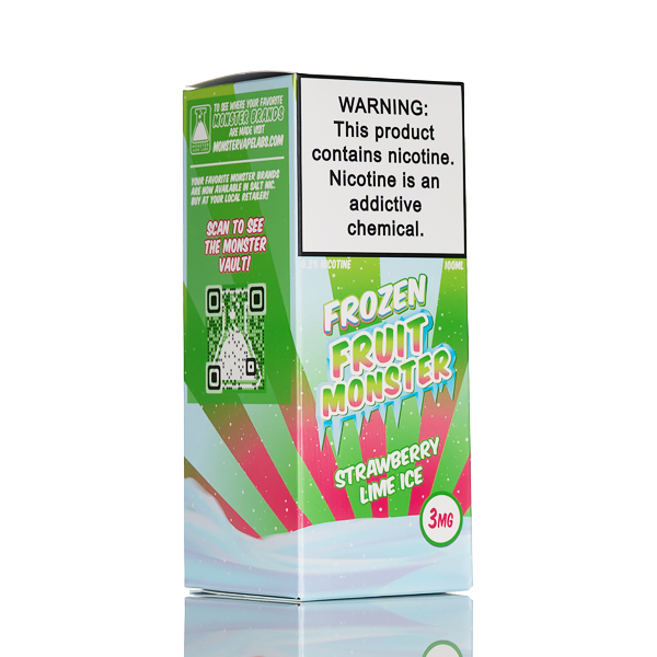 Frozen Fruit Monster - Strawberry Lime Ice, a crisp blend of vine-ripened strawberries and tangy lime, finished with a cool menthol on the exhale.
