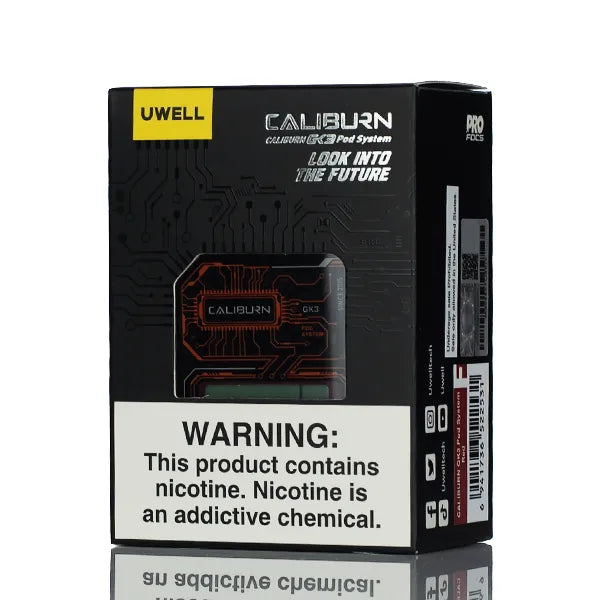 The Uwell Caliburn GK3 25W Pod System is the newest model of the popular KoKo G Series pod systems. The GK3 has been upgraded with a 900mAh internal battery, large segmented OLED display, and new 2.5ml G3 Pods with integrated coil. The GK3 retains its compatibility with all Caliburn G series pods, allowing the user to pick the resistance best suited for their vaping style.